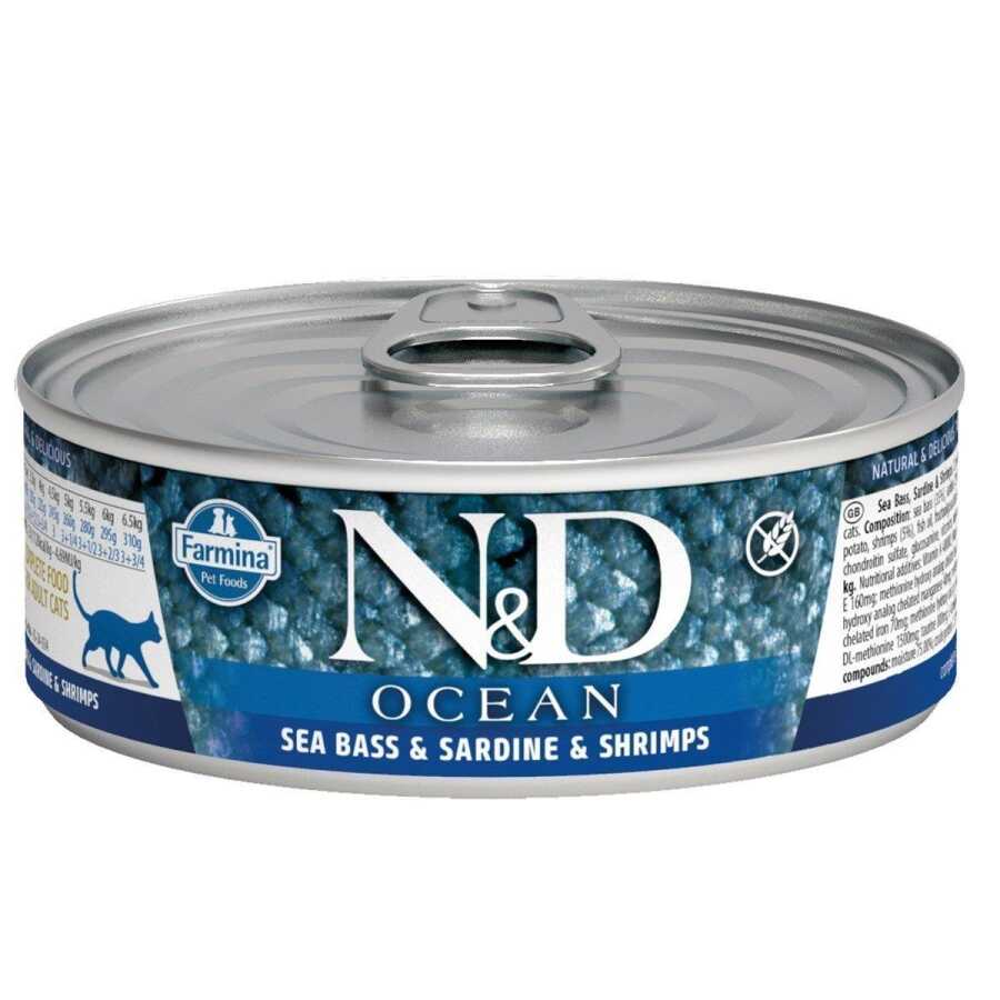 N&D Ocean Levrek ve Sardalyalı Karidesli Yetişkin Kedi Konservesi, yetişkin kediler için özel olarak formüle edilmiş tam bir besindir. %35 levrek ve %20 sardalya içeriğiyle yüksek kaliteli deniz proteinleri sunar. Karides ve morina balığı ile zenginleştirilmiş bu özel tarif, kedinizin damak tadına hitap ederken aynı zamanda bağışıklık sistemi, deri-tüy sağlığı ve kas gelişimi gibi önemli alanlarda destek sağlar.
