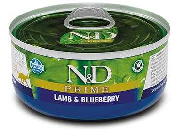 N&D Prime Tahılsız Kuzu Etli ve Yaban Mersinli Kedi Konservesi, yetişkin kedilerin günlük besin ihtiyaçlarını karşılamak üzere formüle edilmiş yüksek kaliteli bir yaş mamadır. Tahılsız yapısı ve doğal içerikleriyle alerji riskini en aza indirirken, kuzu eti ve yaban mersini sayesinde lezzetli ve besleyici bir alternatif sunar.