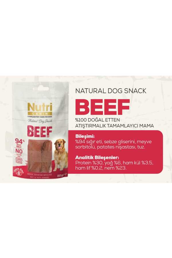 %100 doğal dana eti içeren bu lezzetli ve tahılsız atıştırmalık, köpeğinizin günlük beslenmesine sağlıklı bir katkı sağlar. Yüksek protein oranı ve doğal içeriği ile köpeğinizin damak tadına hitap ederken, katkısız formülü sayesinde güvenle tüketilebilir. Günlük tam mama yerine değil, ödül veya keyifli bir atıştırmalık olarak kullanılabilir.