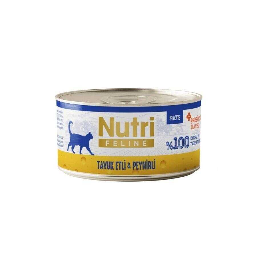 Nutri Feline Pate Tavuk Etli ve Peynirli Tahılsız Kedi Konservesi, yetişkin kedilerin beslenme gereksinimlerine uygun olarak geliştirilmiş, yüksek sindirilebilirliğe sahip ve tamamen tahılsız bir yaş mama alternatifidir. %50 oranında gerçek tavuk eti içeriğiyle kedinizin doğal protein ihtiyacını karşılar. Formülüne eklenen %5 peynir, lezzet katarken iştah açıcı bir deneyim sunar. Şeker, gluten ve GDO içermeyen temiz içeriğiyle hassas sindirime sahip kediler için güvenli bir tercihtir. Prebiyotik inülin bağırsak sağlığını desteklerken, taurin kalp ve göz fonksiyonlarının korunmasına yardımcı olur. Ezme (pate) formu, seçici kediler ve çiğneme zorluğu yaşayanlar için ideal bir yapıya sahiptir.