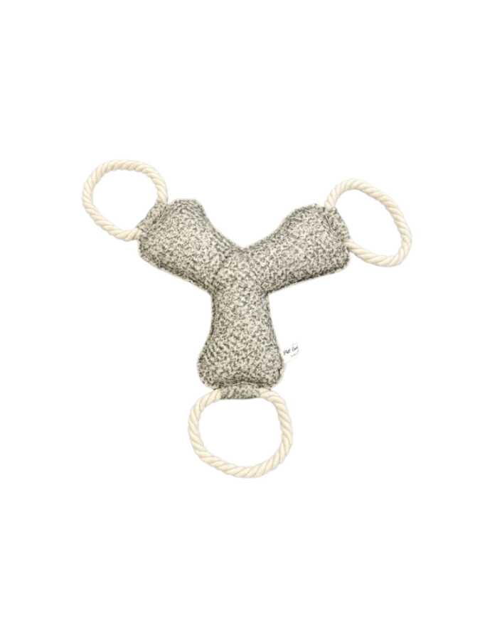 Her üç tarafında 100% pamuk ipli bumerang şeklinde köpek oyuncağıdır. At-getir oyunu için ideal ve kullanışlı bir oyuncaktır. Parçalanıp yutulursa dışkı ile birlikte kolay ve bağırsaklara zarar vermeden atılabilir. Bu oyuncak ile oynarken aynı zamanda köpeğinizin dişleride temizlenecektir. Çamaşır makinasında 30C de yıkanabilir. Oyun bitimi oyuncağı köpeğinizin önünden alınız, oyuncak ile yalnız bırakmayınız.