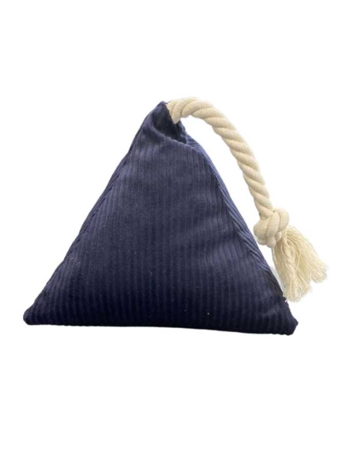 Piramit şeklinde içi elyaf dolu, ucunda oyun ipi bulunan köpek oyuncağıdır. Parçalanıp yutulursa dışkı ile birlikte kolay ve bağırsaklara zarar vermeden atılabilir. Bu oyuncak ile oynarken aynı zamanda köpeğinizin dişleride temizlenecektir. Çamaşır makinasında 30C de yıkanabilir. Oyun bitimi oyuncağı köpeğinizin önünden alınız, oyuncak ile yalnız bırakmayınız.