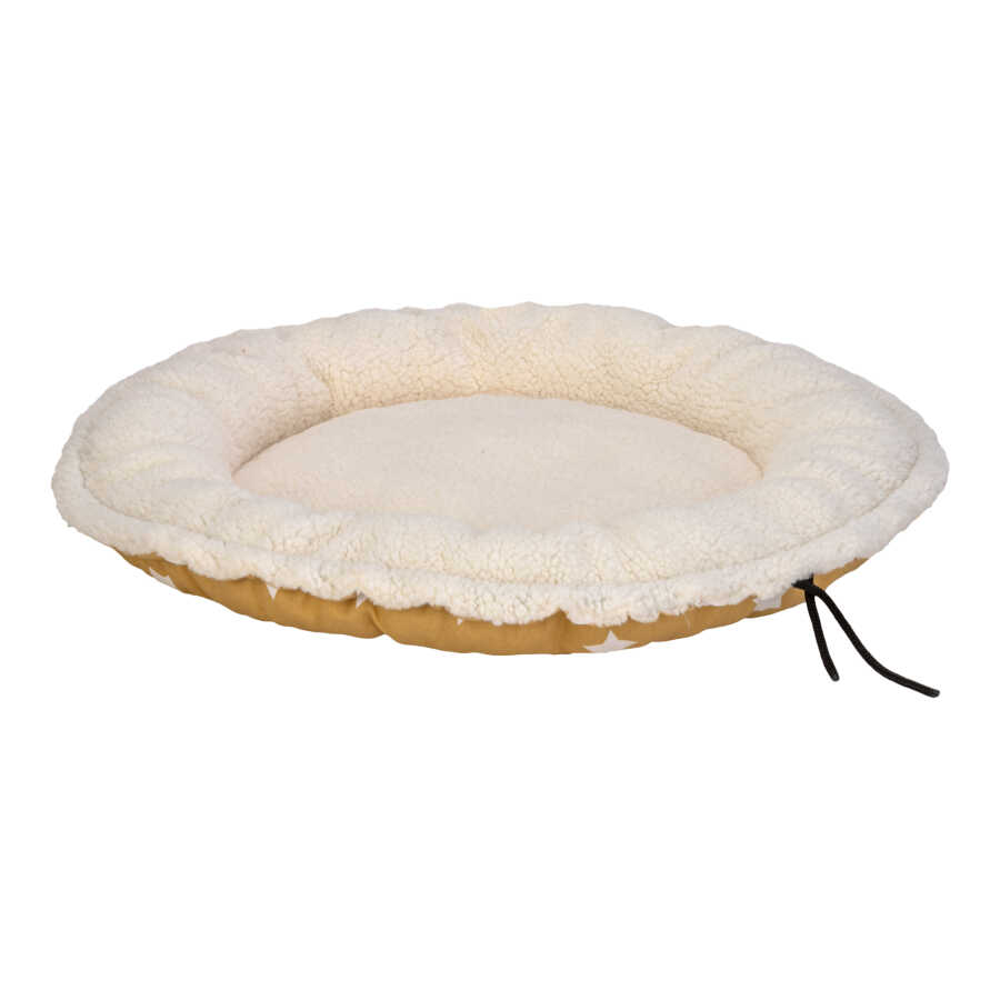 Pet Comfort Sunflower Kedi ve Köpek Yatağı Çift Taraflı Sarı Star/Peluş modeli, hem fonksiyonel hem de şık bir yatak arayan evcil hayvan sahipleri için ideal bir tercihtir. Çift taraflı tasarımı sayesinde bir tarafı su itici ve leke tutmaz özellikli pamuklu kumaş, diğer tarafı ise yumuşak peluş dokudadır. Açık pozisyonda yatak olarak, kapalı formda ise yuva olarak kullanılabilir. Küçük ırk köpekler ve kediler için uygundur.