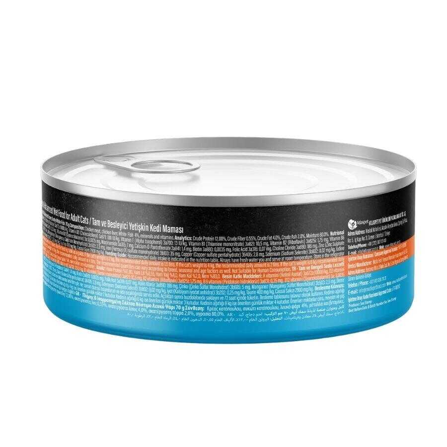 Sosla harmanlanmış beyaz balık parçaları, yüksek sindirilebilirlik ve düşük yağ oranı ile formunu korumak isteyen kedilere destek sunar. Doğal omega yağ asitleri sayesinde sağlıklı deri ve parlak tüy oluşumuna katkı sağlar. Vitamin ve minerallerle zenginleştirilmiş bu özel tarif, günlük enerji ihtiyacını karşılayarak kedinizin sağlıklı ve dengeli bir yaşam sürmesine yardımcı olur.
