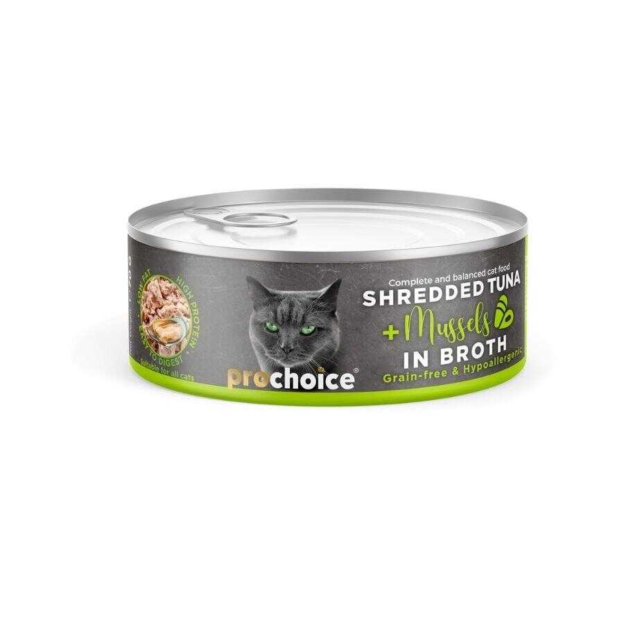 Prochoice Özel Sos İçerisinde Tiftiklenmiş Taze Ton Balıklı ve Midyeli Yetişkin Kedi Konservesi, kedilerin doğal beslenme ihtiyaçları göz önünde bulundurularak formüle edilmiş, tahılsız ve hipoalerjenik tamamlayıcı bir yaş mamadır. Lezzetli sosu ve tiftiklenmiş taze tavuk etiyle kedinizin hem damak zevkine hitap eder hem de sıvı alımını destekleyerek hidrasyon sağlar. Prebiyotik içeriği ile sindirimi ve bağırsak sağlığını destekler, yapay katkı maddelerinden arındırılmış formülü ile hassas mideye sahip kediler için uygundur.