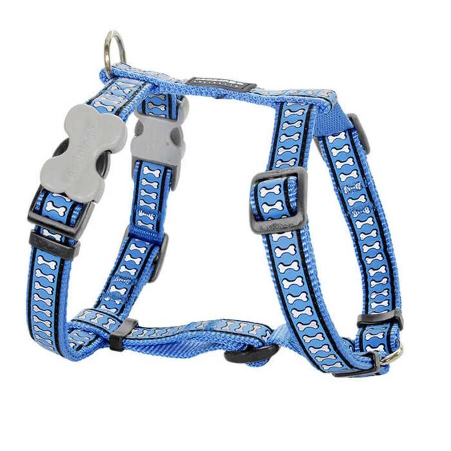 RedDingo Köpek Göğüs Tasması Reflektörlü Kemik Desenli Mavi 12 mm Xs
