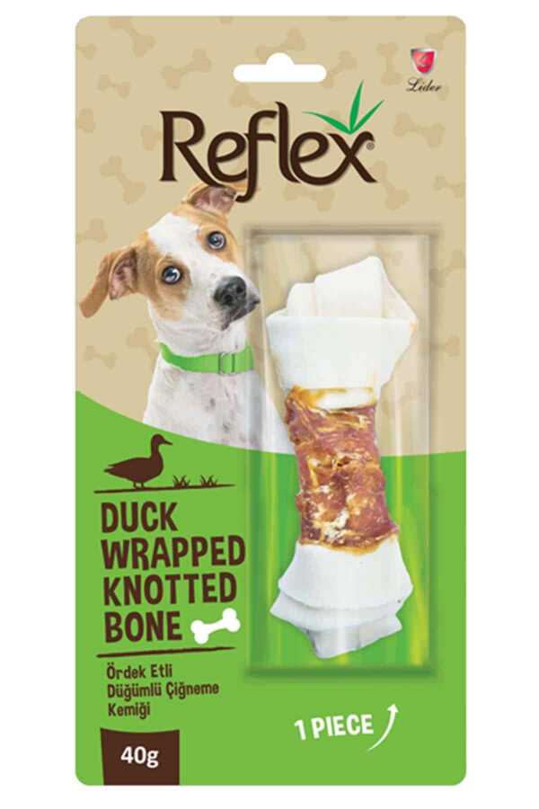 Reflex Ördek Eti Sargılı Düğümlü Köpek Çiğneme Kemiği, köpeklerin içgüdüsel çiğneme ihtiyacını karşılamak ve onları hem eğlendirmek hem de destekleyici bir atıştırmalıkla ödüllendirmek için tasarlanmıştır. Eğitim süreçlerinde ya da doğru davranışları pekiştirmek amacıyla kullanılabilir. Aynı zamanda diş sağlığını desteklemeye yardımcı olur.