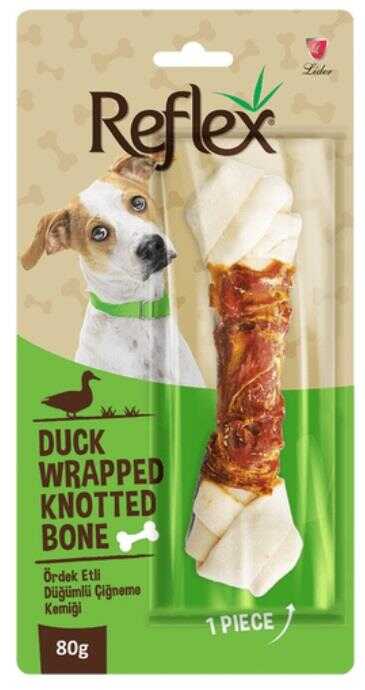 Reflex Ördek Etli Düğüm Kemik, köpeklerin içgüdüsel çiğneme ve kemirme ihtiyacını karşılamak için özel olarak tasarlanmış sağlıklı bir atıştırmalıktır. Hem eğlenceli bir çiğneme deneyimi sunar hem de ağız ve diş sağlığını destekler. Eğitimlerde ve doğru davranışların ödüllendirilmesinde kullanılabilir. Yüksek protein içeriğiyle sindirim sistemine katkıda bulunurken, lezzetli ördek eti sayesinde köpekler tarafından iştahla tüketilir.