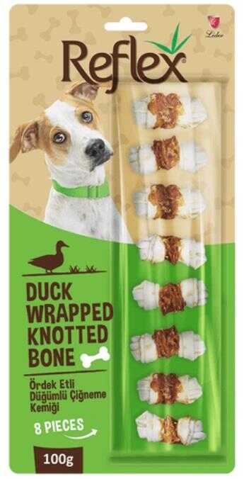 Reflex Ördek Etli Düğüm Kemik, köpeklerin doğal çiğneme ve kemirme içgüdüsünü tatmin etmek için özel olarak tasarlanmış lezzetli ve işlevsel bir ödül mamasıdır. Diş ve ağız sağlığını destekleyen bu düğüm kemikler, hem eğlenceli bir atıştırmalık hem de eğitim süreçlerinde etkili bir motivasyon aracıdır. Yüksek doğal protein içeriğiyle sindirim sistemi sağlığını da destekler.