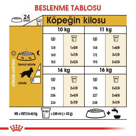 - Köpeğinizin yaş, kilo ve aktivite seviyesine göre mama miktarı ayarlanmalıdır.