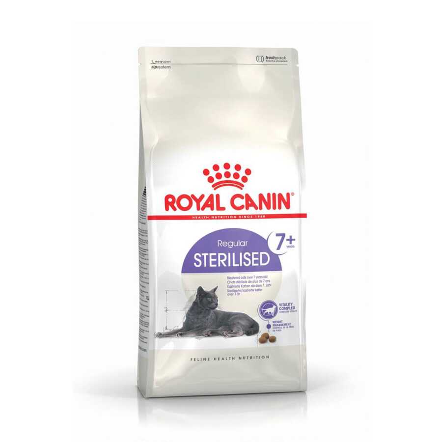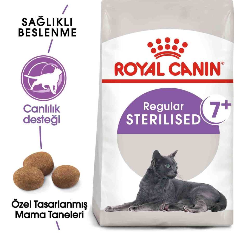 ROYAL CANIN® Sterilised +7, 7 yaş ve üzerindeki kısırlaştırılmış kediler için özel olarak formüle edilmiş bir kuru mamadır. Kısırlaştırma sonrası azalan enerji ihtiyacı ve artan iştah dengesini kurmaya yardımcı olurken, yaşla birlikte gelen kilo alma ve üriner sistem hassasiyetlerini de göz önünde bulundurur. L-carnitin, omega yağ asitleri, vitamin ve antioksidanlarla zenginleştirilmiş bu formül, sağlıklı bir yaşlanma süreci için destek sağlar.