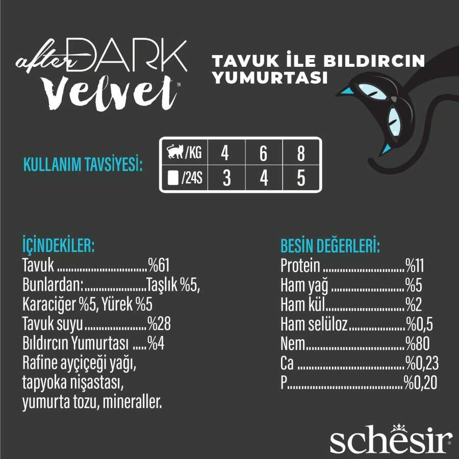 Yetişkin kediler için tam ve dengeli mama, gerçek tavuk filetoları ile lezzetli ve besleyici kalp, karaciğer ve taşlık parçalarının yumuşak ve kadifemsi mus haline getirildiği, protein açısından zengin bir tariftir. Tahılsız formülü ve minimum işlem görmüş kaliteli bileşenleriyle kedinizin tüm besin ihtiyaçlarını karşılar ve gerekli hidrasyonu sağlar.