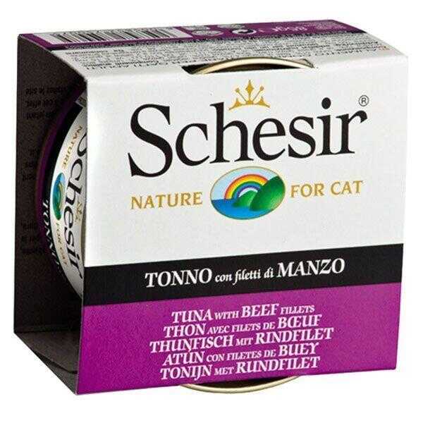Schesir Jel İçinde Ton Balıklı & Sığır Etli Konserve Kedi Maması, %100 doğal ve yüksek kaliteli içerikleriyle öne çıkan, yetişkin kediler için özel olarak geliştirilmiş premium bir üründür. Gerçek ton balığı ve sığır etinden elde edilen protein kaynakları, lezzetli jel dokusu ile birleşerek kedinizin iştahını kabartır. Koruyucu, renklendirici ve lezzet arttırıcı içermez; tamamen doğal ve güvenli bir beslenme sunar.