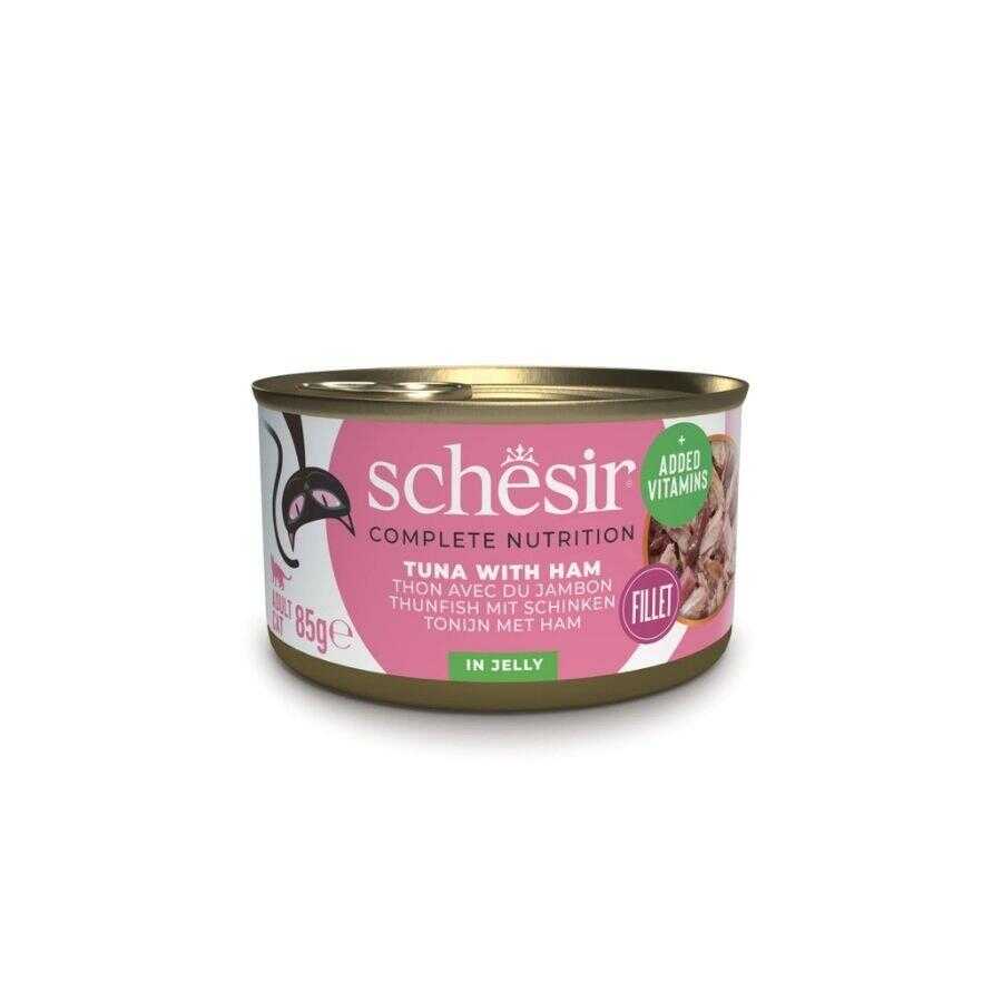 Schesir Ton Balıklı ve Jambonlu Konserve, yetişkin kediler için %100 doğal içeriklerle hazırlanmış tamamlayıcı bir yaş mamadır. Gerçek ton balığı ve jambon, pürüzsüz jel formunda sunularak hem lezzet hem de sindirim kolaylığı sağlar.