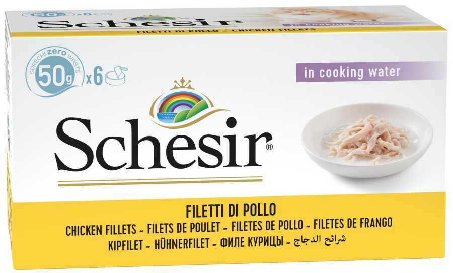 Schesir Tavuklu Yaş Kedi Maması, %100 doğal içeriklerle hazırlanmış, özellikle aşırı kilolu veya küçük porsiyonları tercih eden kediler için uygun, 6'lı çoklu paket seçeneğiyle sunulan kaliteli yaş kedi konservesidir. Her kutu 50 gramdır ve dengeli beslenme sağlar.