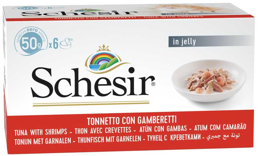 Schesir Ton Balıklı Karidesli Jöleli Kedi Konservesi, yetişkin kedilerin günlük beslenmesi için özenle hazırlanmış, ton balığı ve karides içeren sağlıklı ve besleyici bir yaş mama ürünüdür. İçeriğindeki taurin ve vitaminlerle kedinizin göz, kalp sağlığı ve bağışıklık sistemi desteklenir.