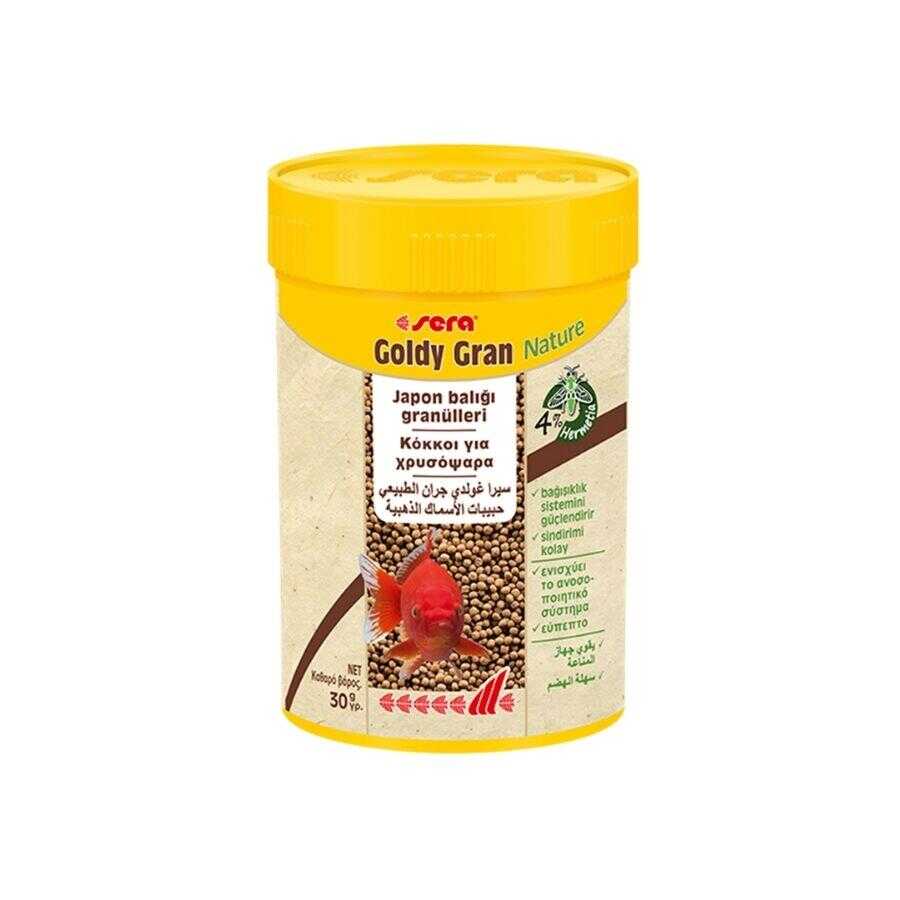 Daha büyük Japon balıkları için granül yem %4 böcek yem ile sera Goldy Gran Nature, daha büyük Japon balıkları ve diğer titiz soğuk su balıkları için, boya ve koruyucu madde içermeyen özenle üretilen granüllerden oluşan temel yemdir. Böcek yem, omega yağ asitleri ve mannoz oligosakkaridler gibi yüksek kaliteli içeriklerinden dolayı, yem mükemmel bir şekilde sindirilebilir ve gerekli tüm besinleri en titiz süslü varyantlara bile sağlar. Böylece balık yağlanmadan güçlü bir şekilde büyür ve hastalık direnci artar. Yüzen granüller şekillerini korur ve suyu kirletmez.