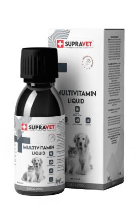 Supravet Multivitamin Sıvı Damla, kedi ve köpeklerin günlük vitamin ve mineral ihtiyacını karşılamak amacıyla özel olarak formüle edilmiş yüksek etkili bir takviyedir. Yavru, yetişkin ve hamile kedi ve köpekler için uygundur. Bağışıklık sistemini güçlendirir, tüy sağlığını destekler ve kemik gelişimini teşvik eder. Sıvı formu sayesinde kolayca uygulanır ve yüksek sindirilebilirliğe sahiptir.