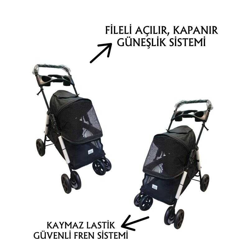Tommy Evcil Hayvan Arabası 85 x 46 x 91,5 cm Siyah, evcil dostlarınızı taşırken hem konfor hem de güvenlik sunan şık bir taşıma çözümüdür. Çelik iskelet yapısı ve 400D Oxford kumaşı sayesinde dayanıklılık sağlar. Ayrılabilir taşıma bölmesi ile çok yönlü kullanım sunan bu model, kompakt yapısı ve yumuşak dolgu tekerlekleriyle kolay manevra imkânı verir. Küçük ırk köpekler ve kediler için idealdir.