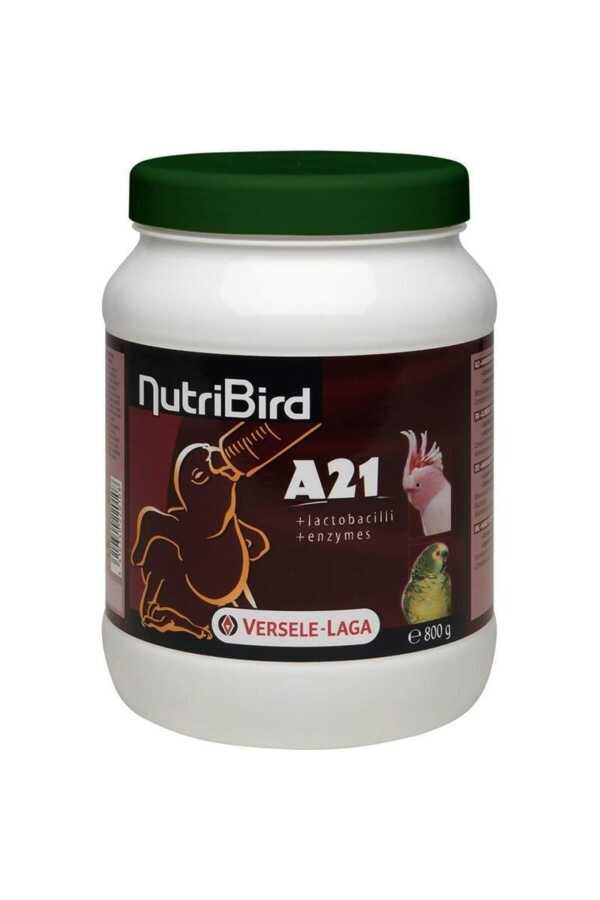 NutriBird A21 800 g. Ebeveynleri tarafından dışlanmış ya da insanlar tarafından büyütülen yavru papağanların, bağışıklık sistemini güçlendiren, onların sağlıklı büyümesini ve gelişmesini sağlamak için hazırlanmış kuru mama. İçindekiler : Unlu Mamuller, sebze proteini özleri, sebze yan ürünleri, sıvı ve katı yağlar, mineraller, lesitin, çeşitli şekerler, maya, Mannan-oligosakkarit, organik asitler. Tanımı: Nutribird A21 tüm elle beslenen yavru kuşlar için tam mamadır. Bilimsel olarak en iyi büyüme hedeflenerek üretilmiştir. Kullanım şekli: Ilık su ile karıştırılarak verilen bir elle besleme mamasıdır. Su-yem oranı yavru kuşun kaç günlük olduğu hesaplanarak dikkatlice belirlenmelidir. Bu oranlar için paket üzerindeki oranlar incelenmelidir. Mamayı ilk kez hazırlarken tabloda belirtilen miktarlara kesinlikle uyulması gerekmektedir. Tabloda belirtilen miktarda mamayı alarak kaynamış suyla bir kasede karıştırınız. Bakteri bulundurabileceği için musluk suyu önerilmez, bu yüzden kaynatılmış su veyahut şişe suyu kullanılması önerilir. İyice karıştırınız. Bir dakika bekletiniz. Eğer karıştırma olayı iyi bir şekilde yapıldıysa kıvamı güzel olacaktır. Karışımın 39 dereceye kadar soğumasını bekleyiniz. Karışımı yavrulara vermeden önce su ile yemin ayrışmasını engellemek için tekrar karıştırılmalıdır. Önemli: Her yem verilmesinden önce yeni bir karışım hazırlanmalıdır. Bu yüzden küçük miktarlarda karışım yapmanızı tavsiye ederiz. Günlük Kullanım Miktarı : Günler A21 Mama Su Başlangıç 1 ölçü 6 ölçü 2. gün 1 ölçü 5 ölçü 3. gün 1 ölçü 4 ölçü 4. gün 1 ölçü 3 ölçü 5. gün ve devamı 1 ölçü 2.5 ya da 2 ölçü