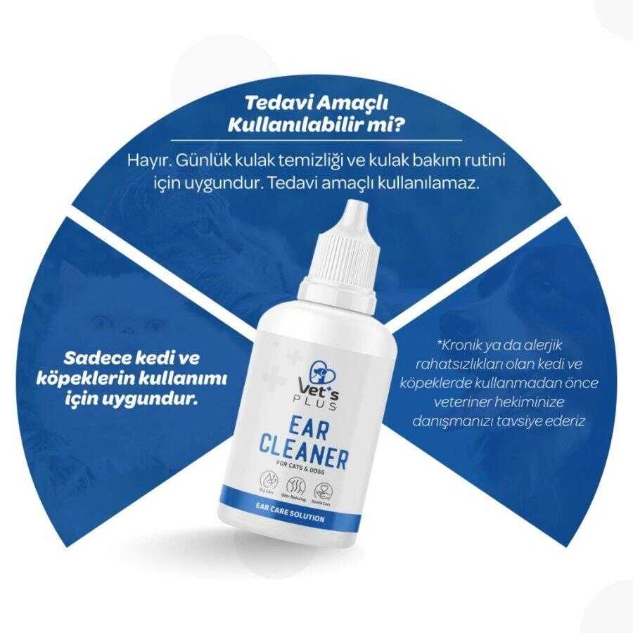 Vet's Plus Kedi ve Köpekler için Kulak Temizleme Solüsyonu, evcil dostlarınızın kulak sağlığını korumak ve hijyenini sağlamak için özel olarak formüle edilmiştir. Toz, kir ve akıntı kaynaklı birikintileri nazikçe temizlerken, kulak kanalının kuru kalmasına yardımcı olur ve kötü kokuların oluşmasını engeller.