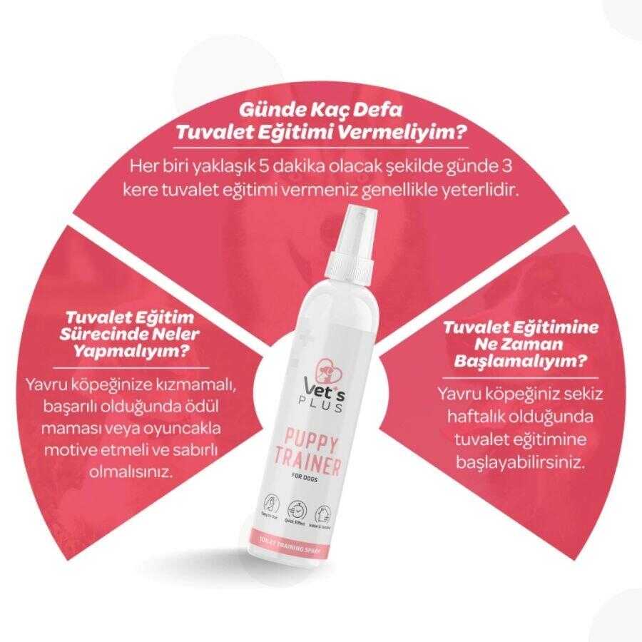 Vet's Plus Yavru Köpek Tuvalet Eğitim Spreyi, yavru köpeğinizin ev içi veya dış mekan kurallarına hızlıca adapte olması için özel olarak geliştirilmiştir. İçeriğindeki yönlendirici kokular sayesinde köpeğinizin tuvalet ihtiyacını belirlediğiniz alanda gidermesine yardımcı olarak eğitim sürecini hem sizin hem de dostunuz için kolaylaştırır.