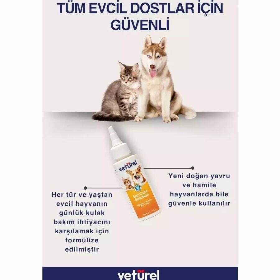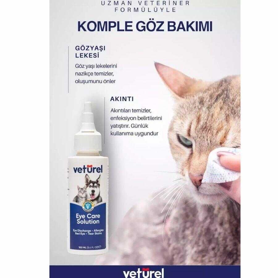 Veturel Kedi ve Köpekler İçin Ağız, Göz ve Kulak Bakım Spreyi Başlangıç Seti (3x100 ml), evcil dostlarınızın göz, kulak ve ağız sağlığı için geliştirilmiş kapsamlı bir bakım setidir. Her yaş grubundaki kedi ve köpekler için uygun olan bu set; göz bakım solüsyonu, kulak bakım spreyi ve ağız & diş bakım spreyi olmak üzere üç farklı üründen oluşur. Antibiyotik, alkol, kortizon gibi zararlı maddeler içermez ve sağlıklı dokulara zarar vermeden güvenli bir şekilde kullanılabilir.