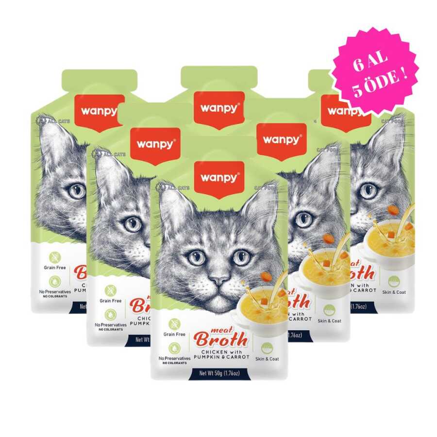Wanpy Tavuk Balkabağı Havuçlu Kedi Çorbası, kedinizin beslenme rutinine lezzetli ve besleyici bir katkı sağlar. Tavuk, balkabağı ve havuç içeriğiyle zenginleştirilmiş bu sıvı ödül maması, vitamin ve mineral yönünden zengin yapısıyla kedinizin bağışıklık sistemini destekler. Antioksidan etkisi ile serbest radikallere karşı koruma sağlar, inflamasyonu önlemeye yardımcı olur. Kalp, sindirim, beyin ve sinir sistemlerinin sağlığını destekler. Tahılsız ve yapay tatlandırıcı içermeyen formülüyle güvenle tercih edilebilir.