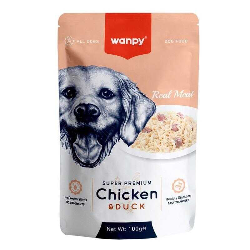 Wanpy Pouch Tavuk & Ördek Yaş Köpek Maması, köpeklerin damak tadına hitap eden lezzetli ve doğal bir formüle sahiptir. Veteriner hekimler ve beslenme uzmanları ile birlikte geliştirilen bu yaş mama, gerçek et içerikleriyle zenginleştirilmiş ve koruyucu ile renklendirici içermeyen yapısıyla öne çıkar. Kolay sindirilebilir olması sayesinde hassas mideler için de uygundur.