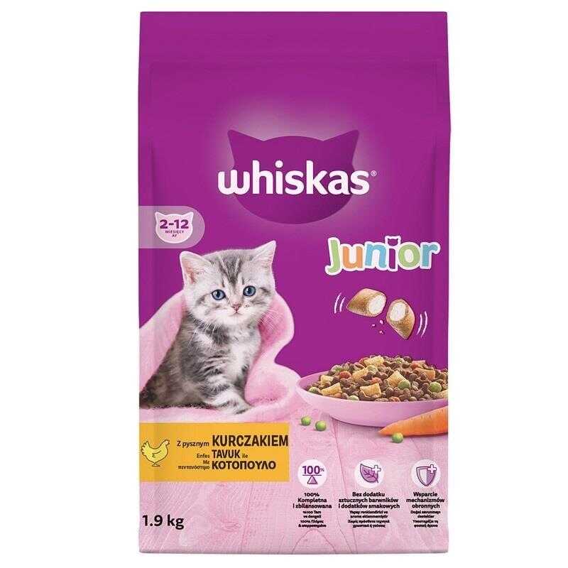 Whiskas Junior Tavuklu Yavru Kuru Kedi Maması, 12 aya kadar olan yavru kedilerin büyüme ve gelişimini desteklemek için özel olarak geliştirilmiştir. Gerçek tavuk proteini içeren formülü sayesinde sağlıklı kas gelişimine katkıda bulunurken, içerdiği vitamin ve mineraller güçlü bağışıklık sistemi ile sağlıklı kemik ve diş oluşumunu destekler. Sindirimi kolay yapısıyla, yavru kedinizin rahatsızlık yaşamadan tüm besin öğelerini almasını sağlar.